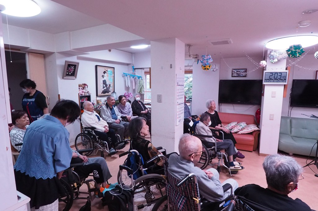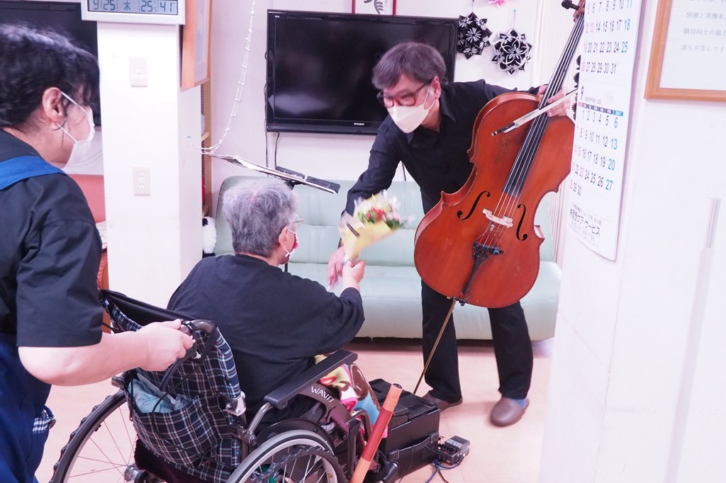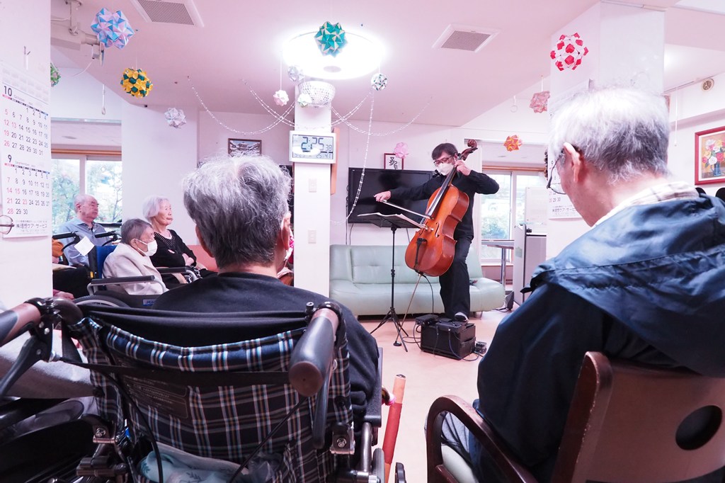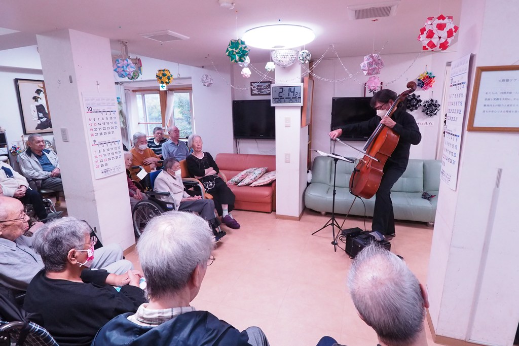 演奏が始まると、利用者の皆様は静かに耳を傾け、目を閉じて音色に浸っておられました。